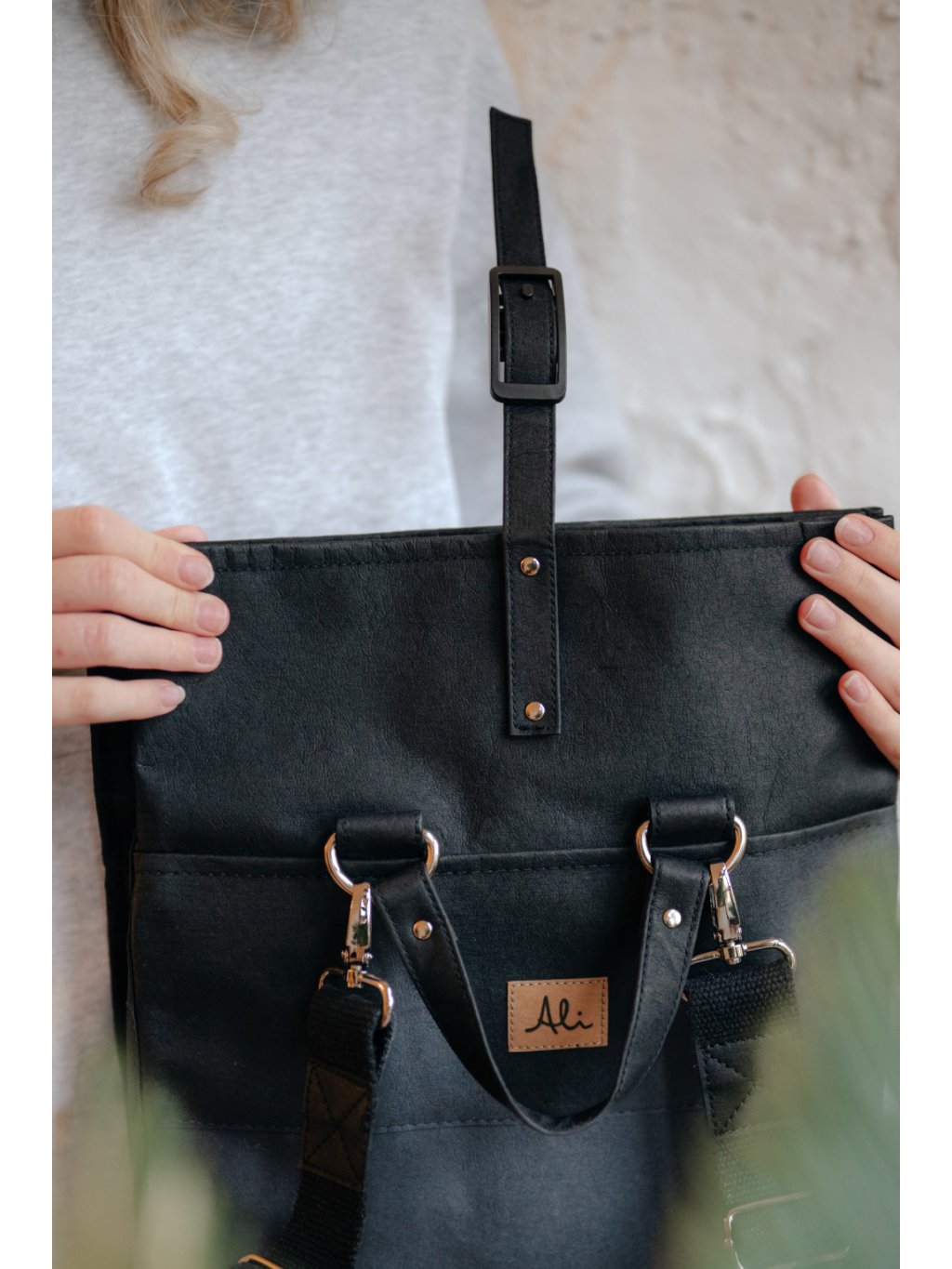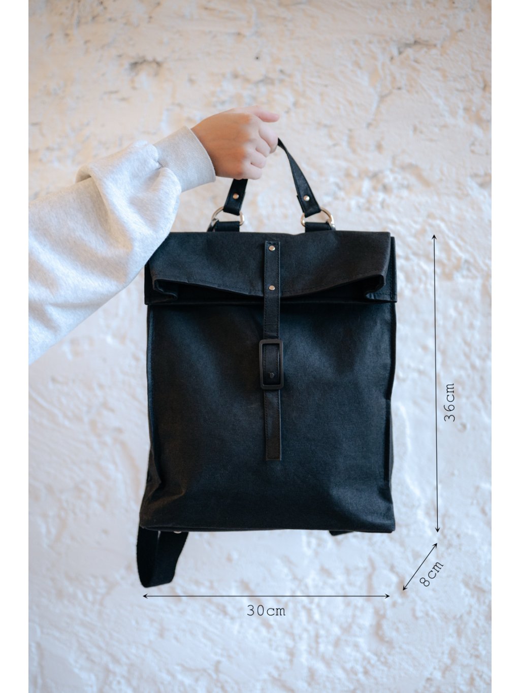 Batoh je vyroben z ekologického materiálu pratelný papír, jiným názvem Snappap, washpaper, washable paper, Kraft tex nebo veganská kůže, více se dozvíte ZDE