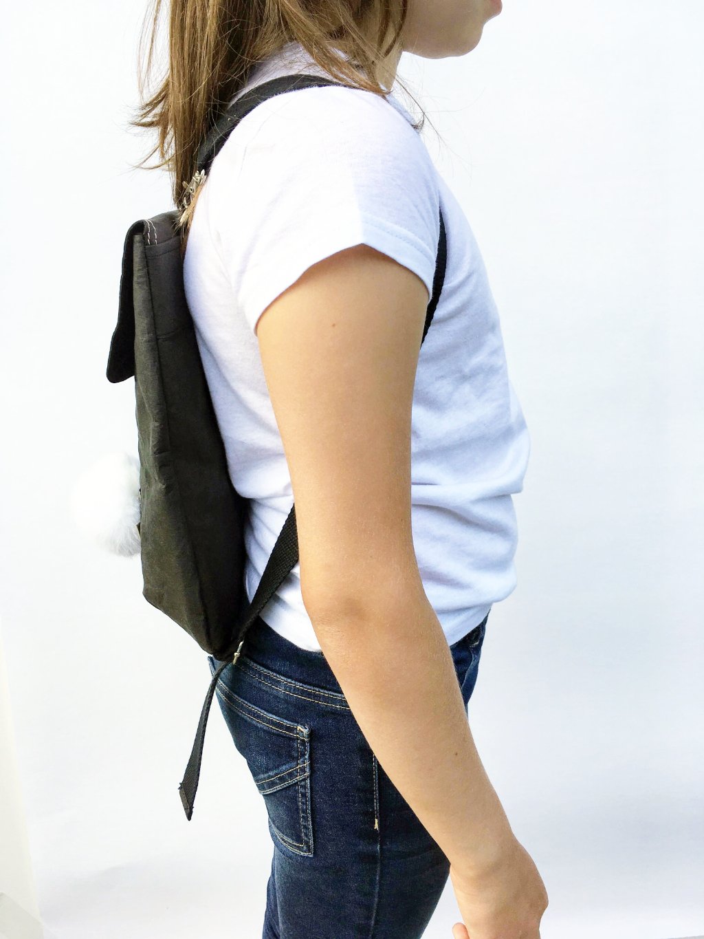 Dětský batoh HONZÍK z pratelného papíru černý a černá klopa