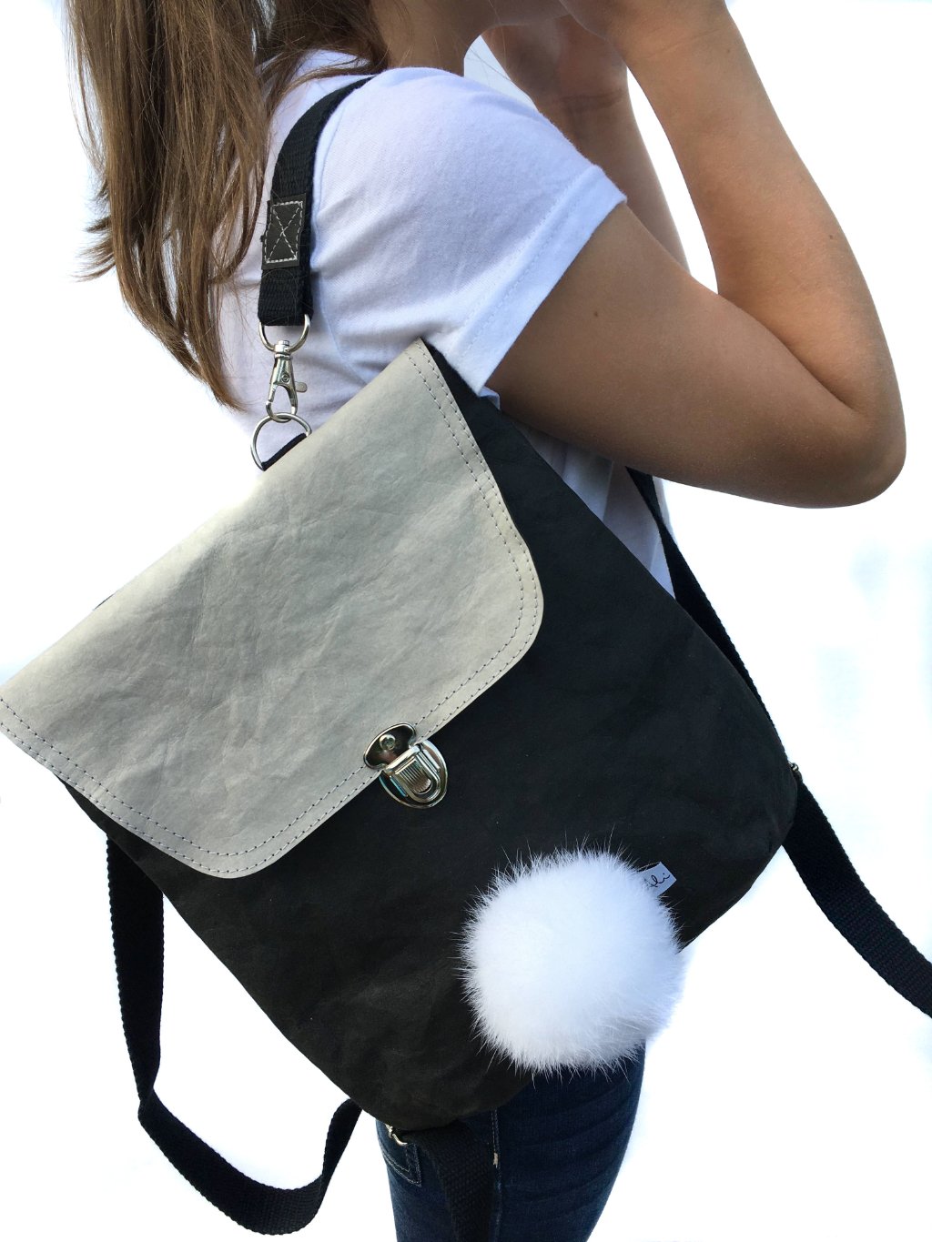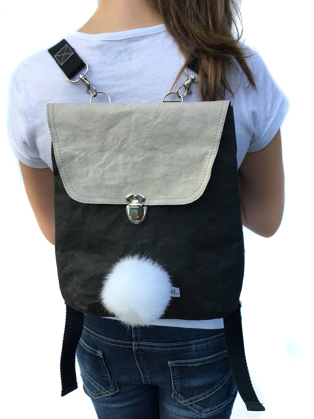 Batoh je vyroben z ekologického materiálu pratelný papír, jiným názvem Snappap, washpaper, washable paper, Kraft tex nebo veganská kůže, více se dozvíte ZDE