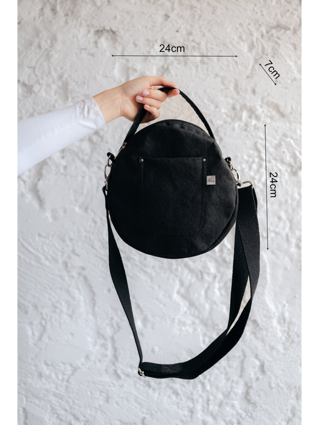 Kabelka se uzavírá na zip, takže vaše osobní věci zůstanou bezpečně uložené. Na přední straně najdete praktickou kapsu pro rychlý přístup k telefonu nebo klíčům. Vnitřní prostor je bez podšívky, což podtrhuje její čistý a přirozený design. Nastavitelný bavlněný popruh s délkou až 140 cm umožňuje přizpůsobit nošení přesně podle vašich potřeb.