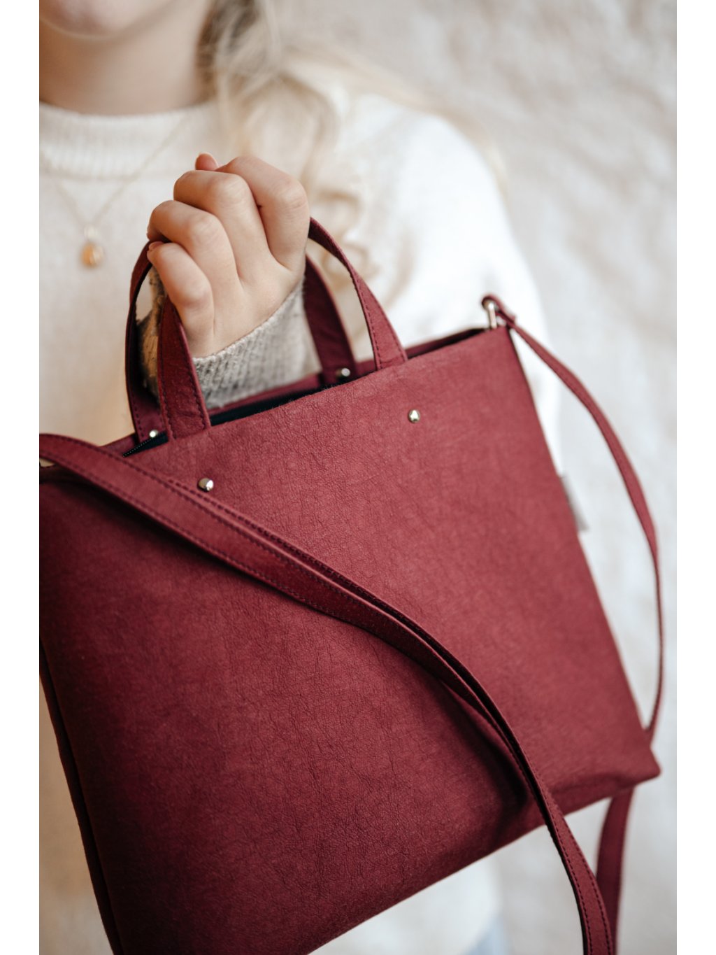Kabelka JUSTÝNA z pratelného papíru bordó