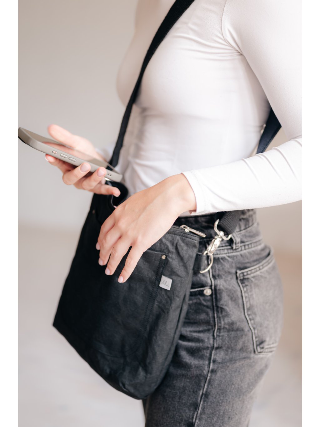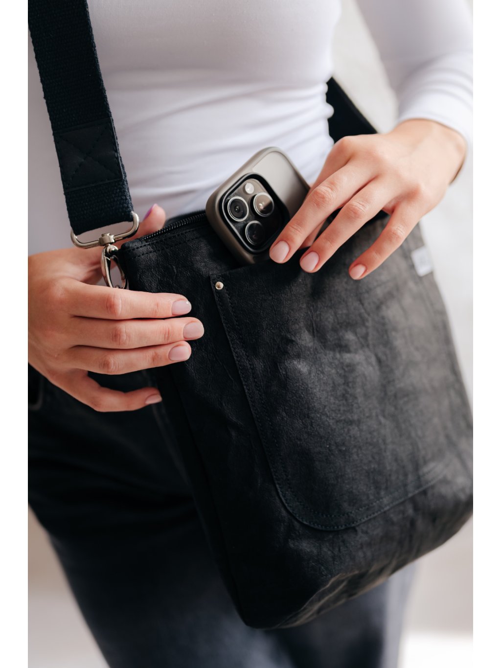 Kabelka KLÁRA z pratelného papíru přední kapsa černá