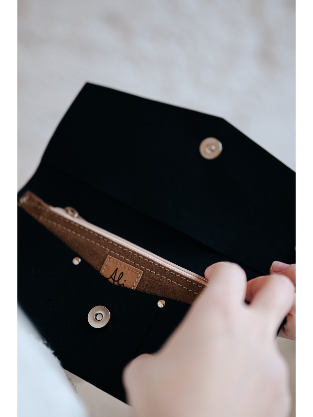 Peněženka je pratelná, můžete ji ručně vyčistit pomocí vody s pracím prostředkem nebo mýdlem a jemným kartáčkem. Po vyčištění ji nechejte pořádně vyschnout.