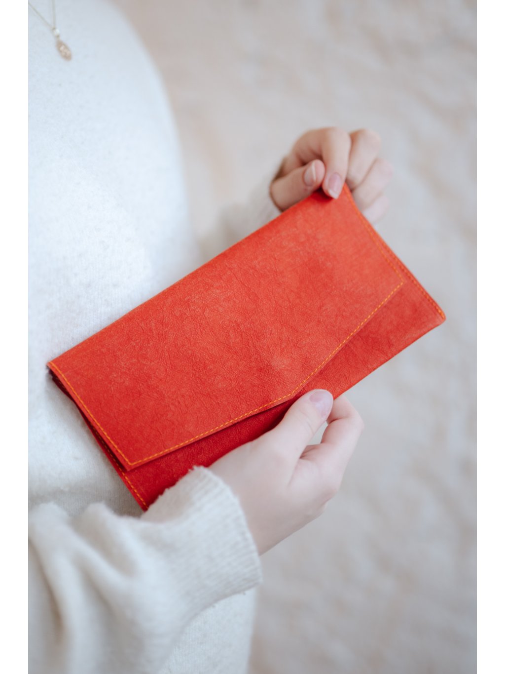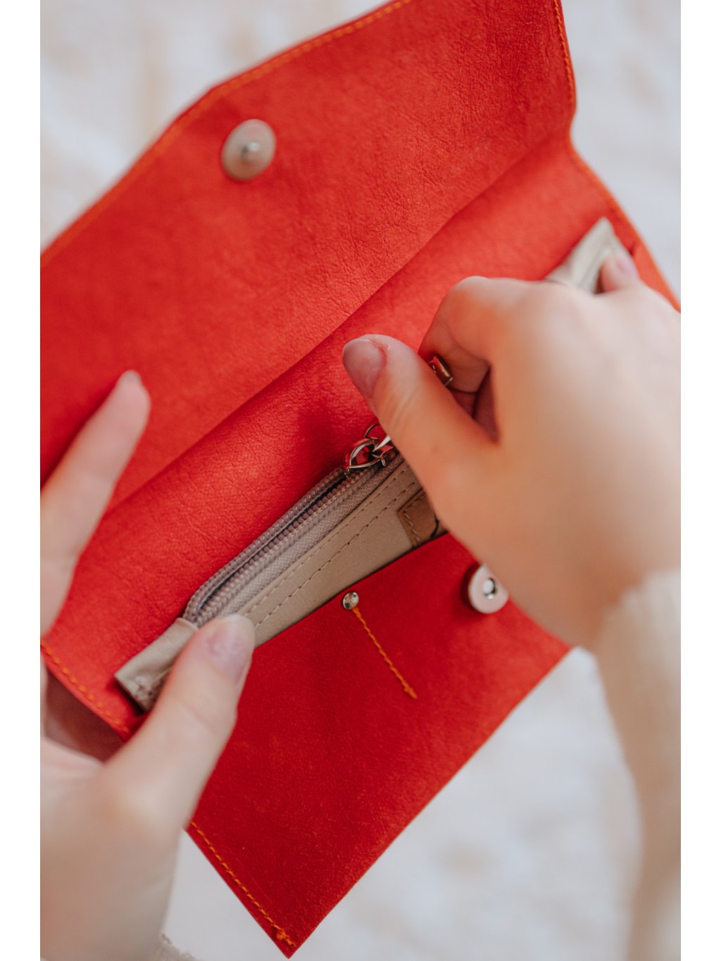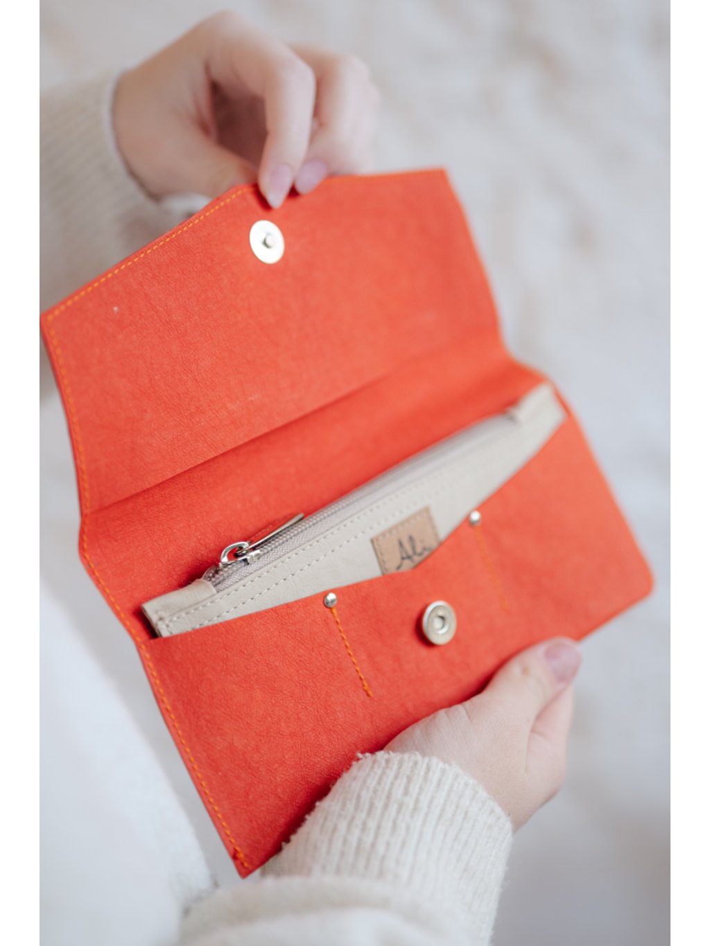 Peněženka je vyrobena z ekologického materiálu pratelný papír, jiným názvem Snappap, washpaper, washable paper, Kraft tex nebo veganská kůže, více se dozvíte ZDE