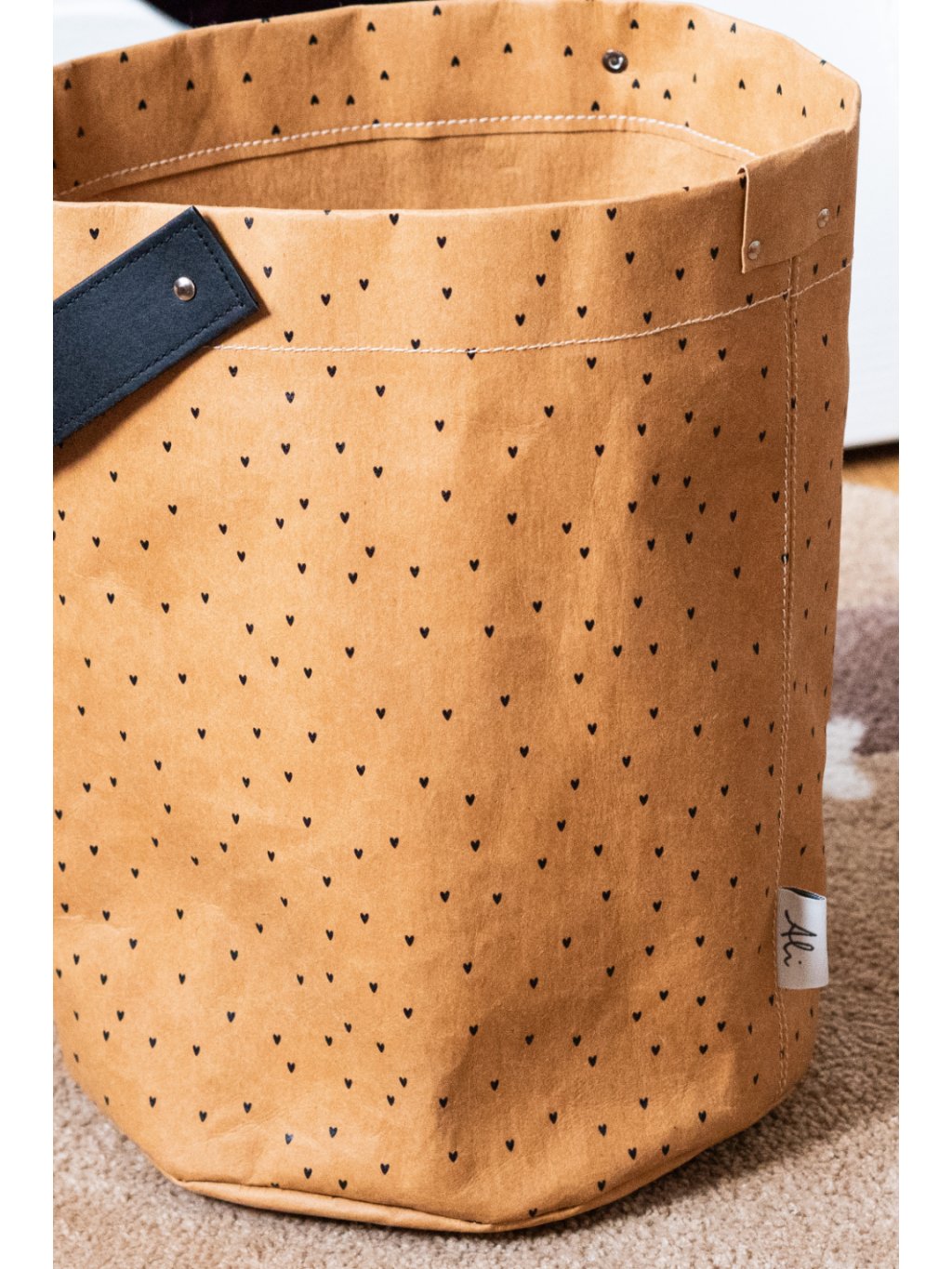 Box je vyroben z kvalitního pratelného papíru, který je lehký, pevný a odolný. Jiným názvem Snappap, washpaper, washable paper, Kraft tex nebo veganská kůže. Materiál drží tvar, zároveň je flexibilní a snadno se udržuje. Více se dozvíte ZDE